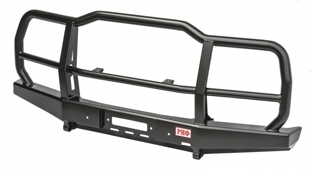 устанавливается в раму. В бампере имеется отверстие под трос лебедки. Бампер «РИФ» оборудован мощными упорами под реечный домкрат и буксирными проушинами для работы с рывковым тросом